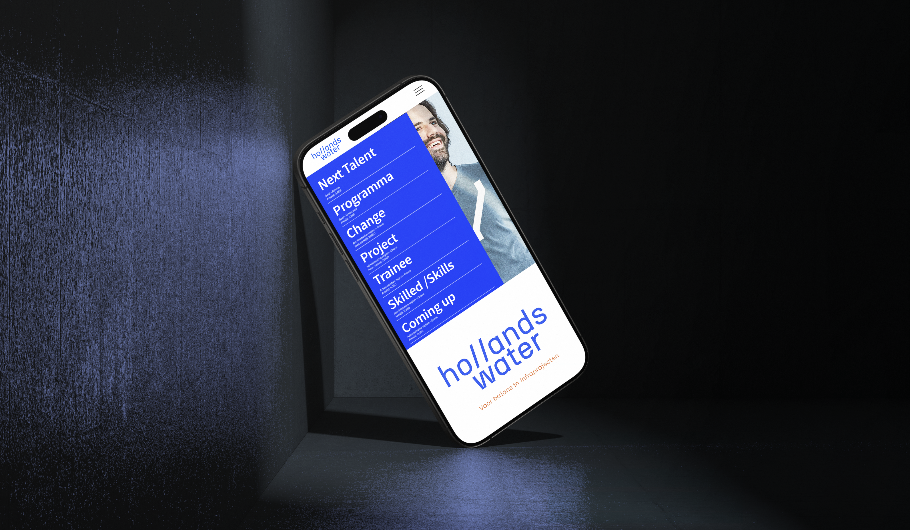 Pan Branding mocht niet alleen de positionering, brand story en visuele identiteit ontwikkelen, concept voor onboarding-traject, maar ook de naam zelf. Een naam met een gelaagde betekenis, die direct refereert aan de essentie van hun werk: de verbinding in onze Nederlandse waterprojecten. De naam ‘Hollandswater’ roept direct associaties op met waterbeheer, een cruciaal aspect van infrastructuurprojecten.